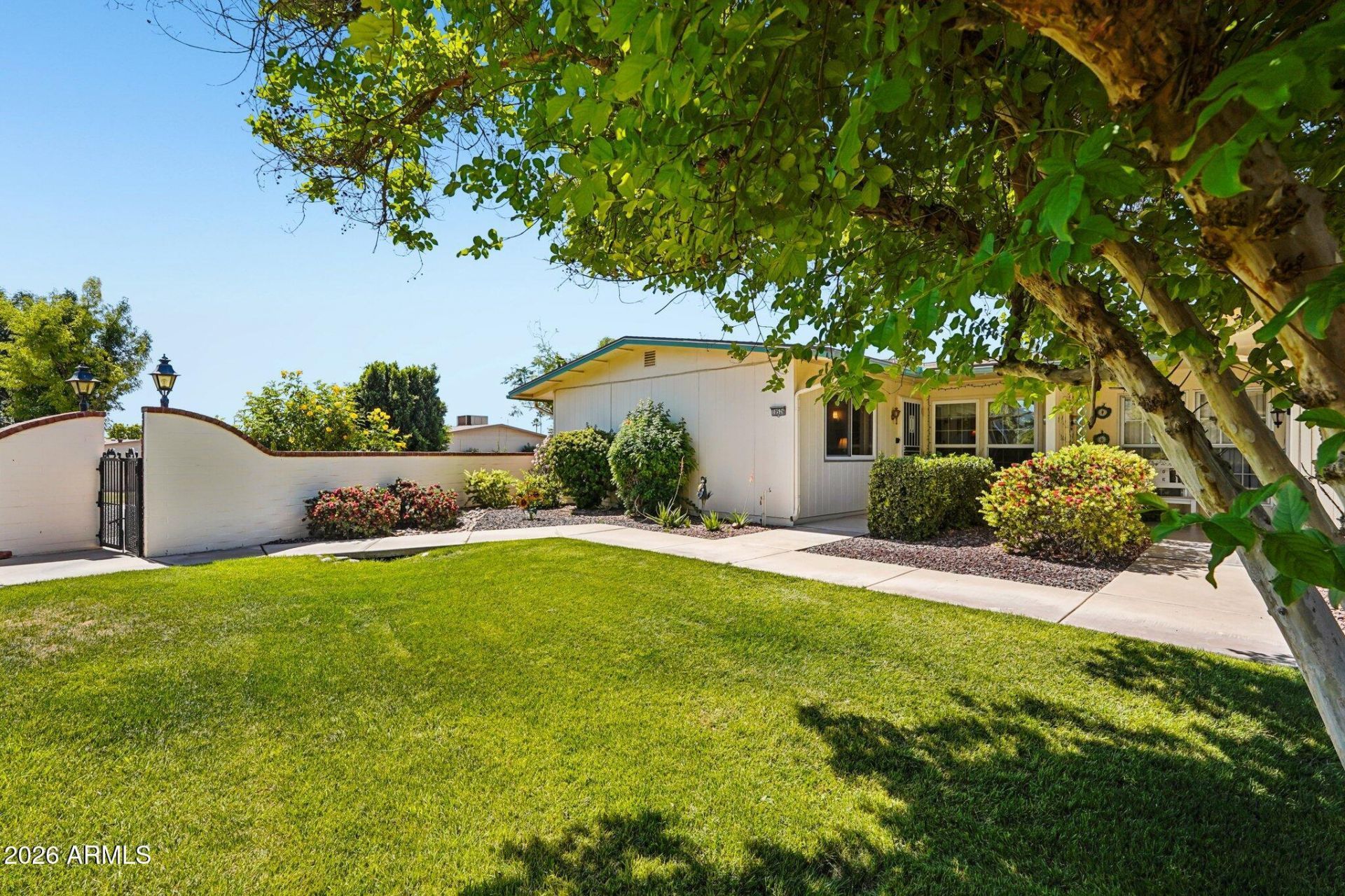 Meticulously cared for 2 BED/ 2 BATH Patio Home in the POPULAR MODEL HOME AREA of SUN CITY PHASE 3 w/ SERENE PARK LIKE SETTINGS * END UNIT w/ SIDE WINDOW & 3 SKYLIGHTS makes this home LIGHT & BRIGHT * OPEN FLOOR PLAN featuring FAMILY / DINING & KITCHEN w/ a BREAKFAST BAR, Extended White Cabinets, New Hardware, Pantry & NEWER SS Appliances & NEW FRIG 2025 * FORMAL LR * Primary Suite w/ French Doors, Walk-in Closet, Additional Built-in Closet & Bath w/ Shower * Pocket door to Inside Laundry w/ sink, W/D included * NEW Tile in Kitchen, Laundry & Garage * NEW Blinds * LENOX HVAC 2017, NEW WINDOWS & SLIDER 2016 & NEW Blown-in INSULATION makes this home VERY ENERGY EFFICIENT * Painted 2022 * NEW Security Doors * Water Heater 2015 * 1.5 CAR GARAGE * Can be Furnished * 1 Pet 35 lbs - No Rentals Amazing Private Patio with NEW Gate * Since this is an END UNIT you do not share a Patio Wall * Sellers LOVE the grapefruit tree & they are the BEST grapefruits ever! Large 2nd Bedroom with Walk-in Closet * Full Hall Bath with Big Tub * Beautiful Grassy front Courtyard * LOW monthly HOA Fee * LOW Electric bills because so energy efficient with more insulation, NEWER HVAC & NEW Dual Pane Windows & Siders * 2017 LENOX HVAC system is maintained & serviced by Comair - last service 4-9-26 and works GREAT * Carpet in Bedrooms, Hall & Living room - the rest is tile * Most furnishings & contents available on a separate bill of sale - Red dots on what they will be taking * WELCOME to PHASE 3 of the ACTIVE ADULT GOLF COMMUNITY OF SUN CITY! The Original Fun City! This home is situated between 2 of the most popular rec centers, Bell Center has the famous walking pool, Bowling Alley, Mini Golf, a restaurant and a Maricopa County Library & lots of shops and more * The Marinette Center has Pickleball courts and much more. Sun City offers many amenities & low taxes! This home is situated between 2 of the most popular Rec Centers. Bell Rec Center with its great Walking Pool, Shops, Bowling Alley, Restaurant & Maricopa County Library & Marinette Rec Center has Pickle Ball & much more * Sun City has a total of 8 Rec Centers throughout Sun City with swimming pools, lap pools, walking pools, Hot tubs and every activity, work shop, & craft you can think of! Bowling! Pickleball! Shuffle Board! Pool Tables! Darts! Tennis! Ground Bowling! Mini Golf! Lake Activities! 9 Public Golf Courses & Reduced Prices with Rec Card. AND 3 Privately owned Golf Courses open to the public. Close to shopping, restaurants & entertainment! Close to Spring Training Base Ball Fields. Close to Arrowhead Mall, Lake Pleasant and all of its growing amenities & restaurants nearby! Close to Grand Ave & 101 access! The list goes on & on! AGE RESTRICTED RETIREMENT COMMUNITY. ONE PERSON MUST BE 55 YEARS OLD AND NO ONE UNDER 19 YEARS OLD. ANYONE UNDER 19 CAN VISIT - SCHOA RESTRICTIONS APPLY.