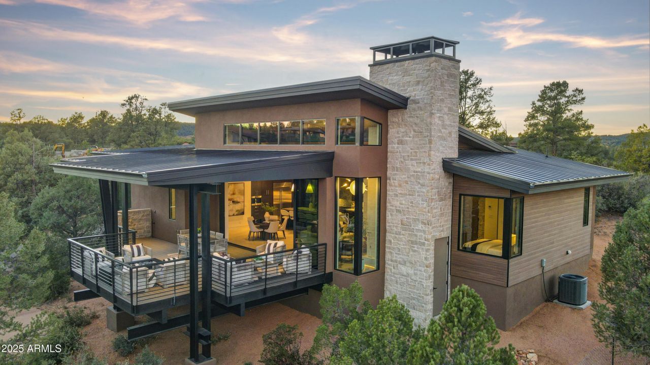 Move-In Ready Fully Furnished Modern Mountain Retreat in The Rim Golf Club Experience effortless luxury in this 2,288 sq. ft. single-level, 3-bedroom, 3-bathroom residence nestled within the exclusive gates of The Rim Golf Club. This move-in ready, fully furnished model home combines modern mountain architecture with the highest level of craftsmanship and design. Positioned in one of the most unique settings within the community, this home offers the rare opportunity to participate in Integras exclusive Stay & Play rental program, professionally managed in partnership with The Rim Golf Club, the only program of its kind available in either The Rim or Chaparral Pines. Designed for true lock-and-leave living, the exterior features maintenance-free TimberTech siding, a standing seam metal roof, and authentic stonework. Step inside to discover an elegant, open floor plan filled with natural light from clerestory windows and a 20-foot wall of glass that seamlessly connects indoor and outdoor living spaces, framing breathtaking mountain views. The chefs kitchen is equipped with Wolf and Sub-Zero appliances, including a built-in coffee system, and a stunning island ideal for entertaining. Additional features include steel interior and exterior beams, 36 x 36 large-format tile flooring, Pella windows, Lutron smart lighting, RING security system, and full SMART home automation. Outdoors, a spacious covered patio and built-in firepit area (gas line pre-installed) provide the perfect setting to enjoy cool mountain evenings. Every element of this home showcases the finest materials and technology available in luxury construction today.