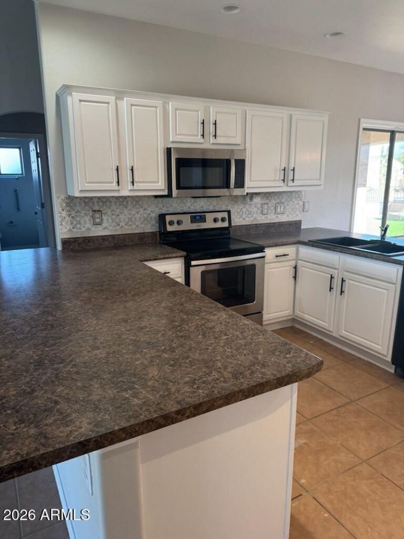 Amazing LAKE FRONT 3 bed 2 bath, fully landscaped TURF front and backyard and on a block fenced lot in Arizona City! NEW stainless steel range,dishwasher and microwave, upgraded cabinetry, countertops, NEW inside paint, all tile throughout, no carpet,, extended patio and driveway, tile roof and more.