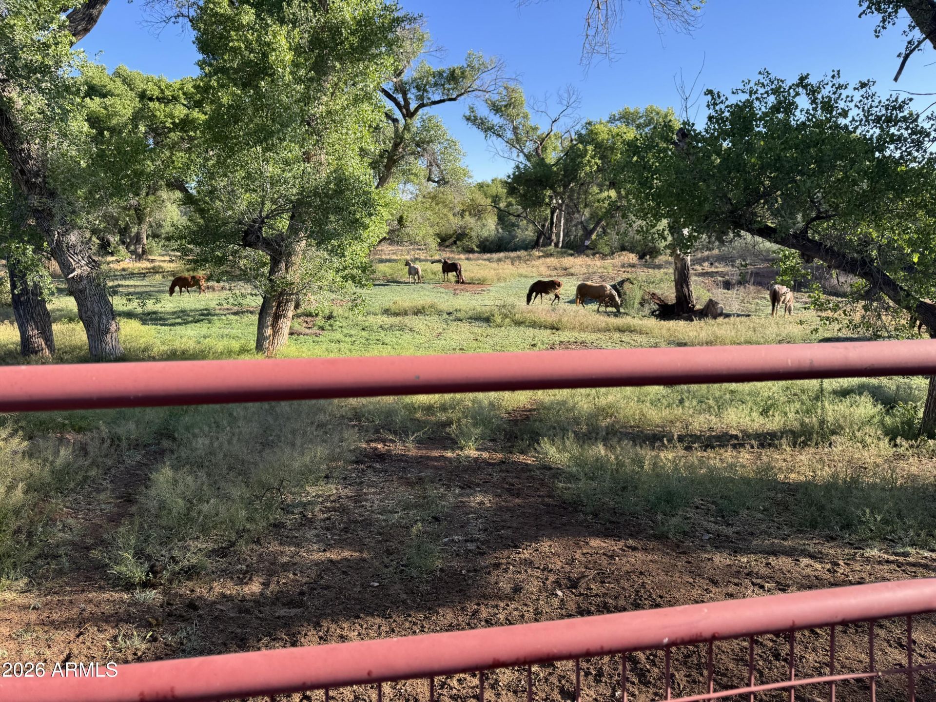 Horse Lovers Dream Property! Experience true Verde Valley ranch living on this exceptional just over 11-acre property with approximately 560 feet of Verde River frontage, offering a rare combination of privacy, functionality, and natural beauty. Surrounded by Arizona State Parks, Prescott National Forest, the Verde River corridor, and conservation easement land, this setting provides a sense of seclusion that is increasingly hard to find.The ranch is thoughtfully set up for equestrian and livestock use with multiple fenced and cross-fenced pastures, including sections of durable pipe fencing, allowing for easy rotation and management. A well-designed 1,786 sq ft steel horse barn features eight stalls and a central breezeway for efficient daily operation. An open arena measuring approximately 275 x 120 is already in place, composed of river silt and level--ready for customization to suit your riding discipline.Water is a standout feature of this property, with irrigation rights delivered via the Verde Ditch running along the west side of the ranch. The system is already in use and set up with piping, supporting pasture maintenance and agricultural flexibility.The 2,112 sq ft ranch-style home, originally built in 1952 and remodeled in 2013, blends classic character with modern updates. The kitchen has been fully upgraded with abundant cabinetry, generous counter space, and a large island ideal for gathering. Bathrooms have been updated with tile showers, and the oversized mudroom/laundry area is designed for ranch living with built-in cabinetry, sink, and additional workspace. A spacious office or bonus room with custom cabinetry and laminate flooring provides flexibility for a home office, hobby space, or guest overflow. Wood flooring runs through the main living areas, adding warmth and continuity.Outdoor living is maximized with nearly 800 sq ft of covered porches spanning two sides of the home--perfect for taking in the surrounding landscape, watching livestock, or enjoying Arizonas year-round outdoor lifestyle.Additional improvements include an 896 sq ft detached garage, full perimeter fencing, and gated access for security and ease of use.A rare blend of Verde River frontage, usable acreage, and well-equipped equestrian infrastructure--ready for your ranch vision.