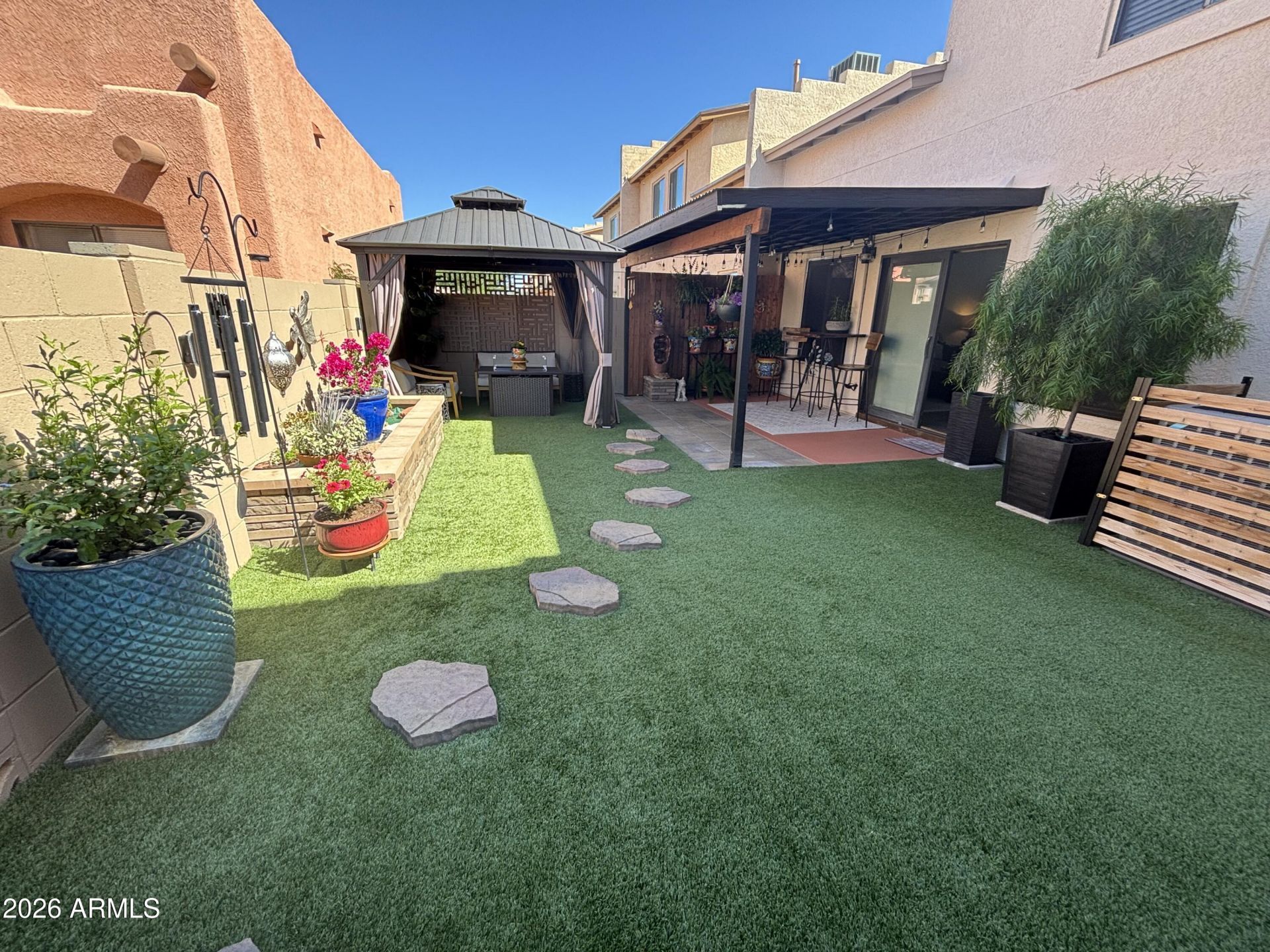 Nice! Nice! Nice! This 3 bedroom, 2.5 bathroom, 2 car garage home is in Pristine condition and shows like a model!!! Home is almost complete remodeled: Custom wrought iron security door. Remodeled Kitchen with Granite countertops, new and upgraded appliances, 5 burner gas air fry/ convection oven, farm sink, Delta touch faucet, new refrigerator, painted kitchen cabinets. New and upgraded ceiling fans (some w/remote controls), light fixtures and new floor coverings thru out! Newly painted inside and outside. Professionally landscaped front and back with AstroTurf, Raised Garden Bed, and a top of line Gazebo. Drapes in the main bedroom do not stay. This home is absolutely gorgeous and its in turn-key condition!!! Hurry wont last long! Seller needs one hour notice.