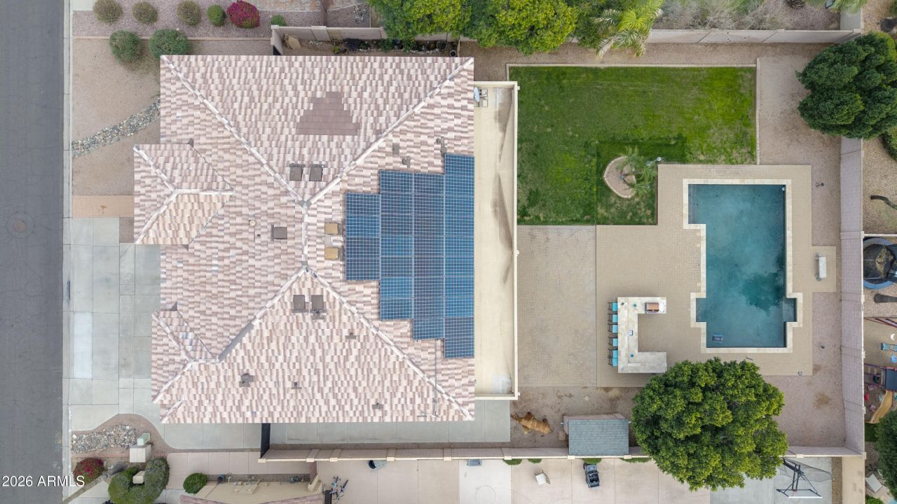 Located in the desirable Bel Fleur Gated Community, this stunning 4 bedroom, 3.5 bath home offers 4194 square feet of luxury living on an 11,060 square foot lot. Enjoy a resort-style backyard featuring a sparkling pool, BBQ island, and covered patio perfect for outdoor entertaining and movie nights. The upgraded kitchen provides abundant counter space and a large island ideal for cooking and gatherings. The main suite includes a private retreat, while a downstairs bedroom is perfect for guests or an office. Additional highlights include a 3-car garage, RV parking, side yards, and owned solar panels for energy efficiency.
