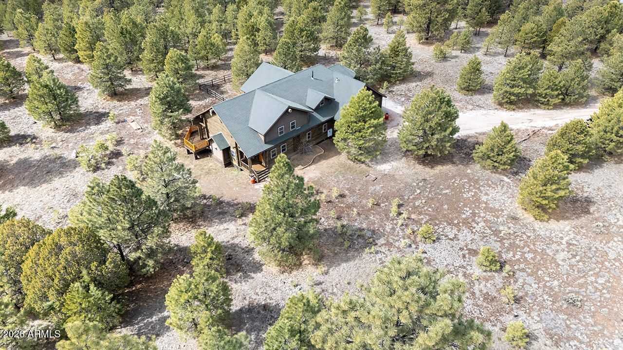 Genuine log cabin in the tall pines of Parks, AZ on 5 private wooded acres. Easy access just off I-40, yet tucked away in peaceful forest surroundings. Less than 20 minutes to Flagstaff, 40 minutes to Arizona Snowbowl. Comes fully furnished and ready to go! Inside, immense vaulted ceilings and a warm gas fireplace anchor the great room, while double French doors open to an expansive covered deck perfect for relaxing or entertaining. Gorgeous kitchen features granite counters and stainless steel appliances. Spacious primary suite on the main level with split floor plan. Bonus room, laundry with sink, tiled showers throughout. Fully furnished including pool table, TVs and deck furniture--move-in ready mountain retreat. Ideal full-time home, vacation getaway, or turnkey short-term rental use. Many of the furnishings were custom made for this cabin. Property is an hauled water--serviced by a 2500 gallon tank. Leased propane tank from AmeriGas provides gas to various appliances. New furnace installed in 2020. Water pressure tank and pump were replaced in 2018 and new deck railing was installed in 2026.