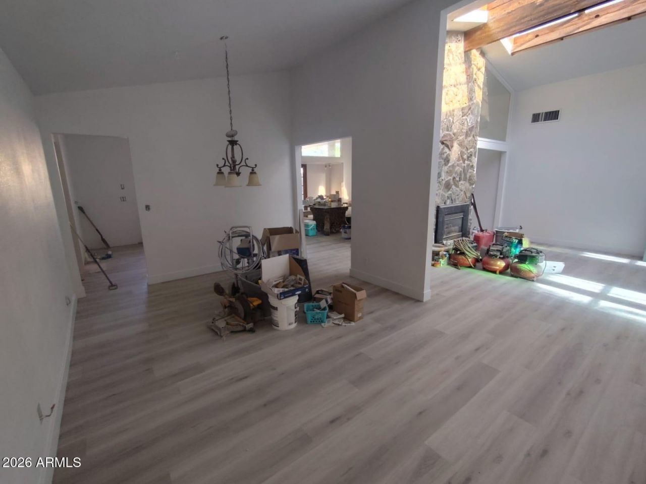 Spacious 3-bedroom, 2-bath home ready for your personal touch and finishing vision! This property offers a fantastic opportunity to customize and add value, featuring a desirable dual-sided gas fireplace, new vinyl flooring, multiple flexible-use rooms, and fresh interior paint already completed. With a functional layout and generous living spaces, this home is primed for transformation. Remaining improvements include installation of carpet, exterior paint, a full kitchen build-out, partial bathroom finishes, and AC, allowing you to design and complete the home exactly to your taste. Whether youre an investor or a buyer looking to create your dream home, this property presents incredible potential in a great layout. Dont miss the chance to make it your own!