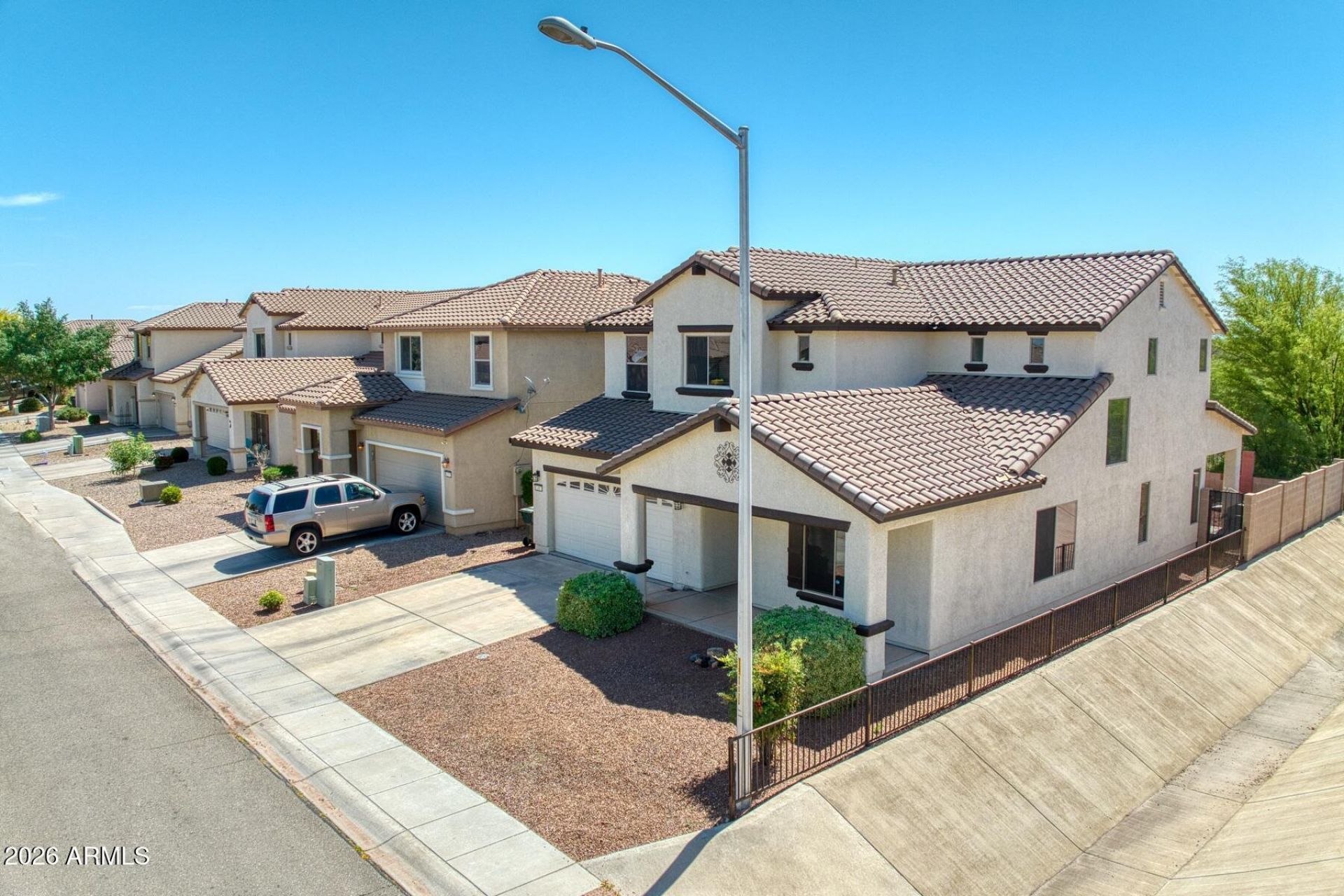 Beautifully appointed 5 bedroom, 3 full bath home with 2,816 sq ft, perfectly positioned backing to a common area and adjacent to a wash for exceptional privacy. Take in breathtaking, unobstructed mountain views from the private master suite balcony. The interior shines with newer stainless steel appliances, granite countertops, and a versatile downstairs bedroom ideal for guests or a home office. Enjoy low-maintenance living with stylish desert/turf landscaping in the backyard--perfect for relaxing or entertaining. Plenty of room to grow in this home!