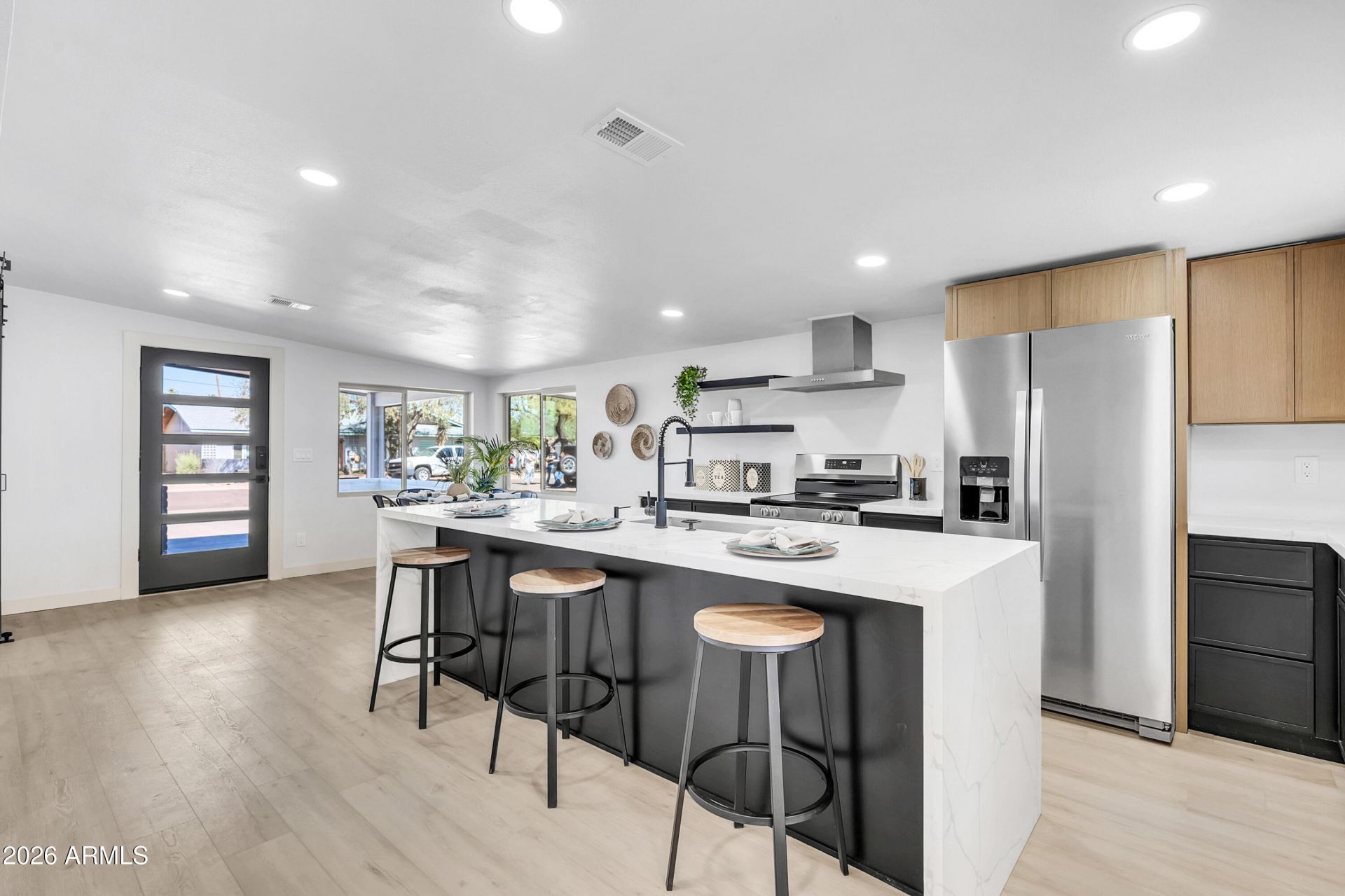 Welcome to this beautifully remodeled Tempe gem, thoughtfully upgraded from top to bottom. Inside, an open floorplan creates a bright and inviting living space, complemented by all-new electrical, recessed lighting throughout, and a stunning primary suite featuring a show-stopping bathroom designed to impress. The home also offers multiple covered areas for comfortable seating and entertaining both inside and out. Step outside to enjoy mature fruit trees along the side of the home, while the backyard offers a private resort-style retreat with a sparkling pool, brand-new equipment, and a tranquil waterfall--perfect for relaxing or hosting guests. Ideally located in the heart of Tempe, this exceptional home combines modern upgrades, comfort, and convenience.