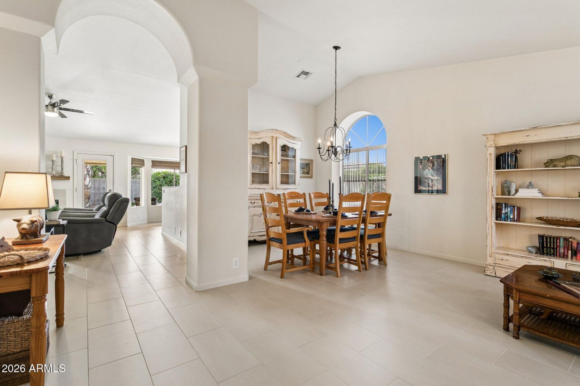 Beautifully maintained single-level home with no interior steps, offering comfort and functionality throughout. Tile flooring spans the entire home and vaulted ceilings that create a bright, open feel. The kitchen features stainless steel appliances and flows into the family room with a fireplace, perfect for everyday living and entertaining. A combined living and dining room adds versatility. The spacious primary suite includes a luxurious bath with separate shower and tub, double sink vanity, private water closet, and a walk-in closet. Situated on an oversized cul-de-sac lot, the property boasts mature landscaping, natural grass, and plenty of room to enjoy the outdoors. Additional highlights include a 3-car garage and RV gate. It is conveniently located near shopping, golf, schools, freeways, medical services, and restaurants. This home offers both comfort and accessibility in a desirable setting.