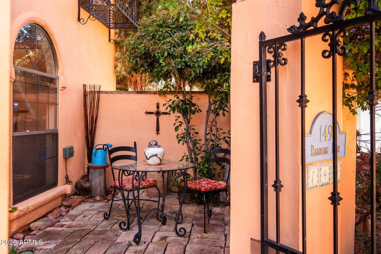 Set on one of the most coveted lots in The Ridge, this gated golf community retreat captures the essence of Sedona living with sweeping golf course views and stunning red rock surroundings. Outdoor spaces include a rooftop deck with panoramic 360° vistas, a wraparound primary terrace, brick paver patios, private fire pit, and built-in 8-person spa, all framed by mature landscaping and courtyard walls for privacy. Inside, enjoy a luxurious primary suite with jetted tub, dual vanities, and walk-in shower, plus a guest suite with steam shower and Juliet balcony. HOA includes Hilton Health Club, spa, pool, fitness, tennis, and pickleball. 30-day rentals permitted. Own a remarkable piece of Sedona history in The Ridge. Originally built for Diane Ladd and Laura Dern, this approximately 2,500 sq ft Spanish Colonial-inspired townhome combines timeless architecture, artistic character, and stunning red rock views. Featuring 3 bedrooms, 3 baths, formal dining, 2 fireplaces, multiple sitting areas, a loft art studio/office, vaulted beamed ceilings, Saltillo tile and oak floors, and beautifully textured designer finishes throughout.Set on one of the largest and most desirable lots in the gated Ridge golf community, the property offers exceptional outdoor living with a rooftop deck showcasing panoramic 360-degree views, a wraparound primary suite deck, brick paver patios, artificial turf, a private fire pit, and 3 tranquil water features surrounded by mature landscaping for added privacy.Additional highlights include a heated and cooled Arizona room, spacious primary bath with jetted tub and separate shower, spiral staircase to the rooftop deck, and a 2-car garage with built-ins and workbench. HOA dues include owner access to the Hilton Health Club Spa & Pool, fitness center/classes, pickleball, tennis, and swimming. 30-day rentals allowed, making this an outstanding option for a second home or investment property. Furnishings, décor, and housewares available by separate bill of sale.