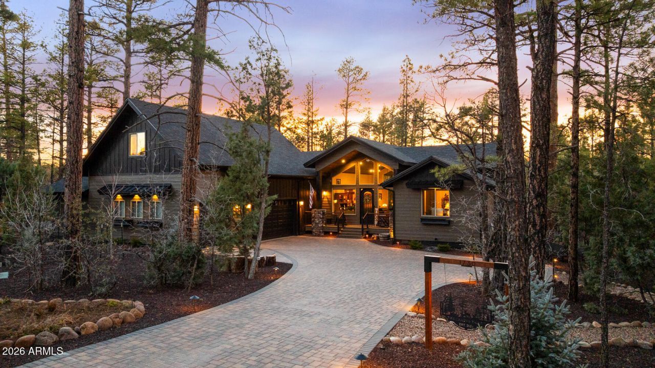 Nestled among towering ponderosa pines on two lots in the coveted Torreon Lakes neighborhood, this 4-bedroom, 3-bathroom custom home is one of those rare properties where every inch was thoughtfully crafted. A custom iron front door welcomes you into an open great room with soaring pitched ceilings, a gas fireplace, and wide-plank waterproof LVP flooring throughout. The kitchen stops people in their tracks! Medallion Alder knotty wood soft-close cabinets and a custom-built island with built-in shelves. Alder wood doors and baseboards, custom vanities, two walk-in showers, tankless water heater, and whole-home water softener round out the thoughtful details. Meticulously maintained and exceptionally clean! Upstairs, a private guest suite with its own bedroom, full bathroom, and bonus room offers the kind of separation guests appreciate and owners love. The 3-car garage includes a dedicated oversized storage room, and outside the .61-acre double lot is fully irrigated with six new trees planted in May 2025. The back deck -- with its own gas fireplace, ceiling fan, and hardwired lighting -- is where White Mountain evenings were made to be spent. Homes with this level of finish on two lots in Torreon Lakes do not come available often.