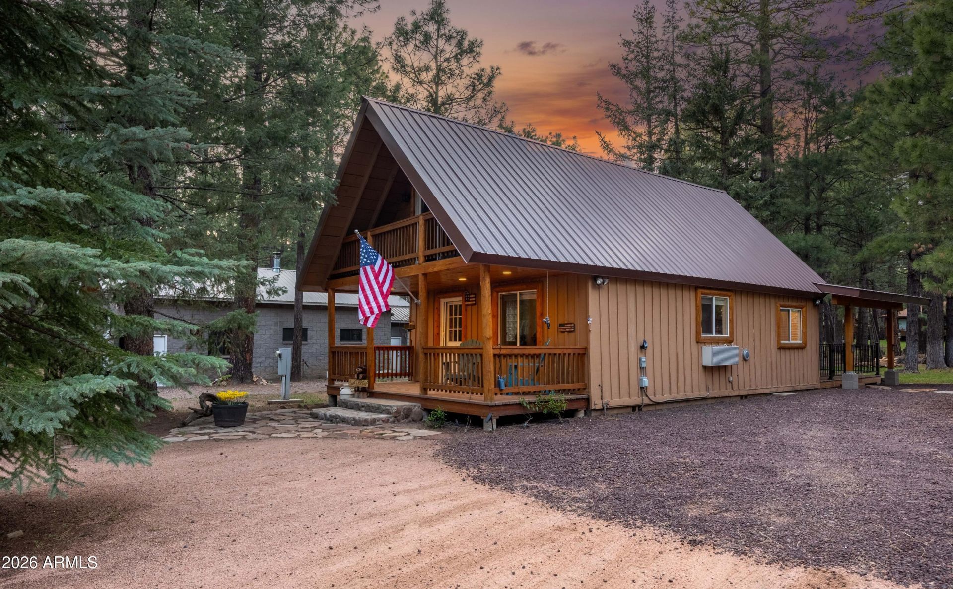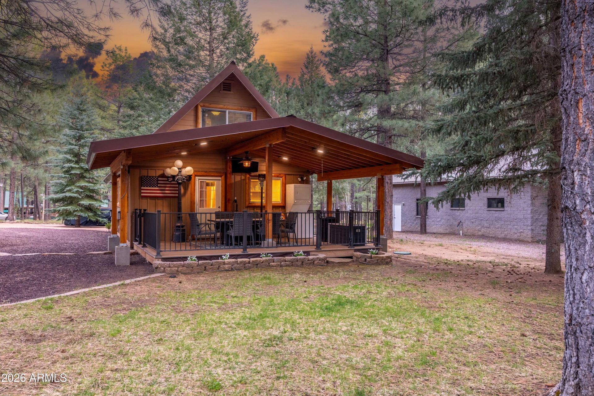 Coming Soon, this very rare Forest Lakes retreat offers comfort, character, and outstanding outdoor living on a desirable half-acre setting [21,224] along the cool pines of the Mogollon Rim. Located at 1895 Ferret Cir, this 976-square-foot home is thoughtfully designed with 3 sleeping areas/bedrooms, and 1 full bathroom, making it an ideal escape, seasonal residence, or full-time mountain home. A circular drive creates an inviting arrival and provides generous parking for guests, trailers, or recreational vehicles. The charming front deck welcomes you with peaceful views of a majestic spruce tree surrounded by tall ponderosa pines and the refreshing summer breeze Forest Lakes is known for. Inside, the home features a warm and functional layout with a comfortable living room anchored by a wood-burning stove, perfect for crisp evenings in every season. The eat-in kitchen offers practical space for everyday meals and easy entertaining, while the sleeping loft adds flexibility for additional guests or a cozy reading nook.The backyard is where this property truly shines. Enjoy a grassy yard, swing area, picnic table space, and a fire pit for memorable evenings under the stars. The impressive covered deck is beautifully finished with large glulam beams, can lighting w/ corrugated metal accents, Trex decking, and wrought-iron fencing. A dedicated outdoor laundry area adds convenience. Even better, the furniture conveys, allowing you to begin enjoying the space With no mandatory HOA and nearby access to multiple lakes, including Willow Springs Lake, Woods Canyon Lake, and the Mogollon Rim Visitor Center, this is a rare opportunity to own a well-appointed home in one of Arizonas most sought-after high-country communities. Whether you are seeking weekend adventure or a serene summer retreat, this cabin delivers charm, usability, and a setting that is difficult to duplicate.