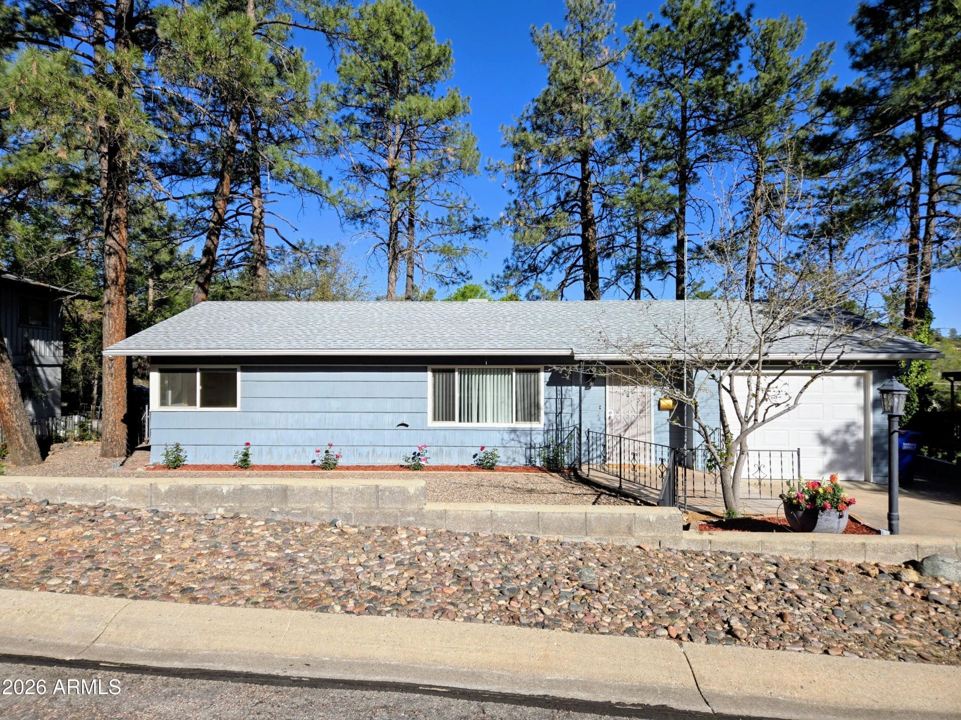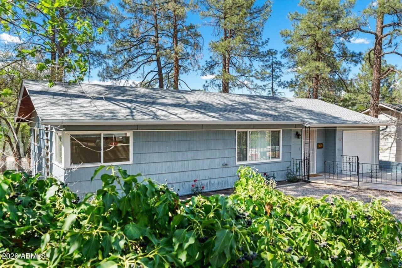 Step into timeless charm with this beautifully maintained 2-bedroom home nestled among the pines and just a short stroll from downtown Prescott. Set on a spacious lot with ample parking and mature landscaping in both the front and back, this property offers the perfect blend of character and convenience. Inside, youll be welcomed by warm hardwood floors and a thoughtfully updated kitchen featuring sleek quartz countertops and modern finishes--perfect for everyday living or entertaining. Both bedrooms are generously sized and showcase vintage built-in closets that add to the homes historic appeal. The bathroom is tastefully appointed, maintaining the homes charm while offering comfort and functionality. The most recent upgrade is a brand-new roof, providing peace of mind for years to come. Whether youre enjoying the serene setting under the tall pines or taking advantage of the close proximity to Prescotts shops, dining, and events, this home is a rare find that captures the essence of Prescott living.