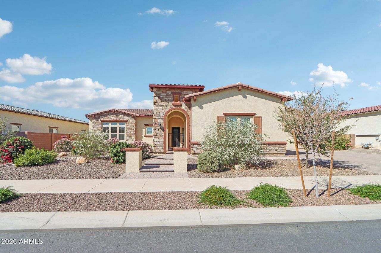 Resort-style luxury in Legado! Perfectly placed in a premier area of Legado Capstone, this home combines comfort, style, and convenience. Packed with features and thoughtful upgrades, this home includes: 12-foot ceilings throughout; a gourmet kitchen with adjacent casual dining space with built-in cabinets and GE Monogram appliances (including a 48-inch range, custom hood, 48-inch built-in refrigerator, expansive kitchen island, and walk-in pantry); 3-bedrooms, each with its own bathroom and spacious walk-in closets; powder room; custom-crafted home library; formal dining room; and an open great room that flows seamlessly from the kitchen. This home has a 16-foot sliding glass door with motorized shades which overlooks the beautiful backyard with a sparkling pool, custom mini golf, built-in gas grill, 2 custom pergolas, and an expansive patio with motorized shade - ideal for entertaining and Arizona sunsets. Complete with a 4-car garage and located in the top-rated Higley Unified School District, this residence is an exceptional home where every detail has been thoughtfully considered. Experience modern elegance in the heart of Queen Creek!