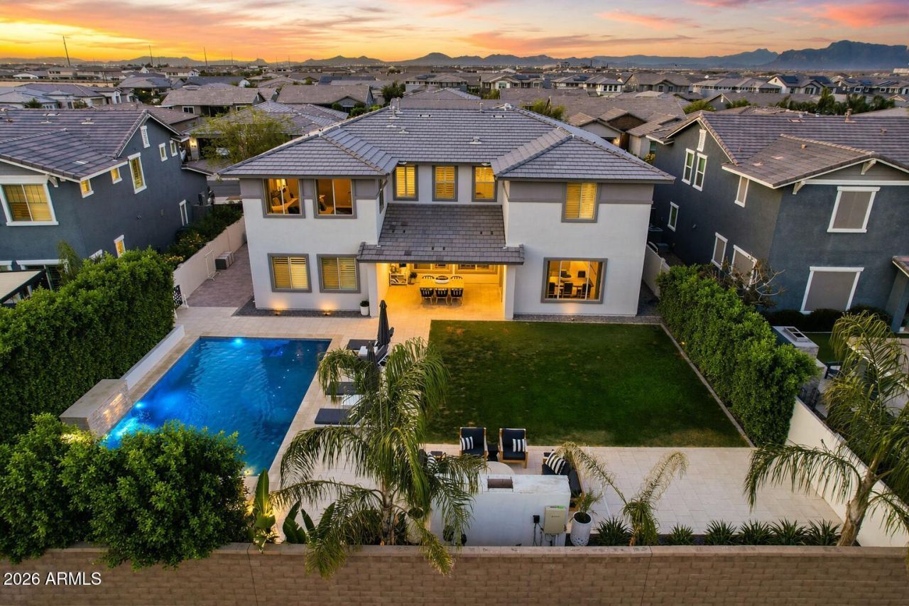 Welcome to the most upgraded and meticulously designed home in the gated community of Spur Cross. Located in the heart of Queen Creek this incredible estate sits on a premium lot just under 1/4 acre with no neighbors behind. Offering over 5,000+ square feet of thoughtfully designed living space, this residence delivers the perfect balance of luxury, function, and everyday livability.From the moment you step inside, the home presents like a professionally designed model. Expansive open-concept living spaces flow seamlessly together, complemented by a beautiful formal dining area filled with incredible natural light. The chefs kitchen is the true centerpiece, featuring an oversized island, upgraded cabinetry extending to the ceiling, designer hardware, custom wood hood, marble and brass backsplash, and premium finishes throughout. Designed for both entertaining and everyday use, it anchors the home perfectly.The floor plan is both versatile and intentional, offering 6 bedrooms, 4.5 bathrooms, a huge loft, and a spacious downstairs oversized bedroom with its own ensuite bathroom, ideal for guests or multi-generational living. Each bedroom features a walk-in closet, and upstairs youll find a convenient Jack and Jill bathroom connecting two of the secondary bedrooms. Every detail has been carefully curated, from upgraded flooring and custom wall treatments to designer lighting, plantation shutters, and high-end finishes that elevate every space.The backyard is where this home truly sets itself apart. Situated on a nearly 1/4 acre lot with no neighbors behind, this outdoor space has been designed to rival a luxury resort. Mature trees provide additional privacy, while the fully customized heated pool and spa feature a large baja step, deep-end design, saltwater system, in-ground cleaning, and top-of-the-line equipment with WiFi connectivity, allowing you to control the spa from anywhere. The space is complete with a gas fireplace, expansive decking, paver walkways, and professional lighting throughout, creating an incredible setting for both entertaining and relaxing year-round.Throughout the home, youll find over $320,000 in custom upgrades, including a fully upgraded primary bathroom with spa-like finishes, porcelain tile flooring, epoxy garage floors, upgraded fixtures and hardware, custom entertainment wall, and a long list of thoughtful enhancements that go far beyond builder-grade.The exterior delivers just as much appeal, featuring incredible curb appeal, a 3 car tandem garage with an extended workshop area, and an RV gate with a paver pad for additional flexibility and storage.Located within the gated Spur Cross community, residents enjoy access to a community pool, parks, and walking paths, creating a true neighborhood lifestyle. The location is just as impressive, with close proximity to Frontier Family Park, the brand new EOS Fitness, Frys Marketplace, and some of Queen Creeks most popular destinations including the Queen Creek Olive Mill. With easy access to State Route 24, commuting throughout the Southeast Valley is simple and convenient.This is not just a home, its a fully realized vision of modern Arizona luxury living. Homes like this rarely come available.