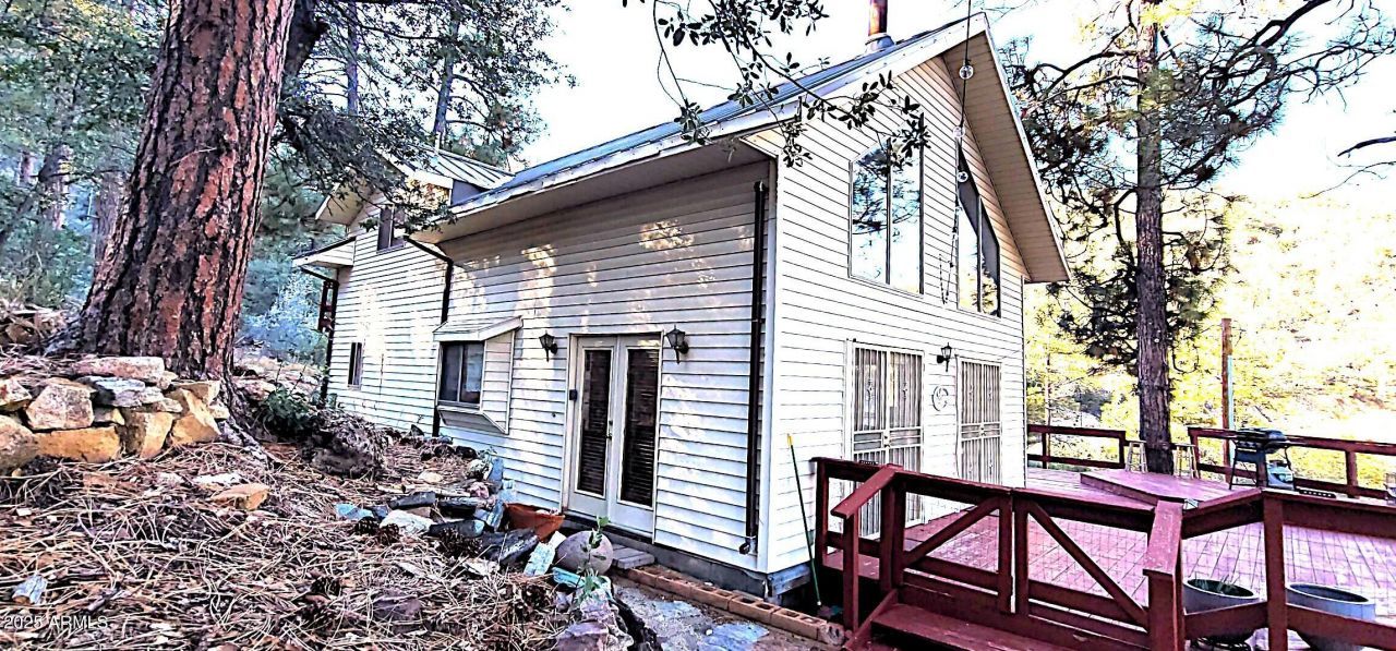 Own the iconic Rock House in the tall pines of Crown King. This gorgeous cabin sits high above town with soaring windows and incredible views from every deck. Light and bright open floor plan with generous living spaces; the gorgeous custom installed European white oak floors have recently updated this beautiful home. The loft-style primary suite features a private balcony, sitting area, and ample storage. Enjoy a large laundry/mud room, extra storage, shed, and a terraced backyard with fire pit???perfect for gatherings. The expanded east deck offers some of Crown Kings best views. Perfect mountain getaway! Own a Piece of Crown King Charm : The Iconic Rock House in the Tall PinesWelcome to one of Crown Kings most beloved cabins, beautifully perched high above the town and surrounded by tall, whispering pines. If youve been dreaming of a mountain retreat with unforgettable views, this is the one.Step inside to soaring windows that frame sweeping forest vistas and fill the home with natural light. The open floor plan is ideal for relaxing or entertaining, featuring generous living spaces and a bright, inviting atmosphere. This cabin has beautiful updated flooring - custom-installed European white oak throughout (including the stairs) and tile.The spacious loft-style primary suite offers the perfect escape, complete with a private balcony, a cozy sitting area, and ample storage.A large laundry/mud room with a full-size washer and dryer adds convenience. At the same time, multiple decks provide stunning views from every angle, perfect for morning coffee, sunset watching, or weekend gatherings.The terraced backyard is designed for enjoyment, featuring a fire pit, gathering areas, and an additional storage shed. The expanded east-facing deck offers some of the most spectacular views in Crown King.This is truly mountain living at its finest,private, peaceful, and ideally located above the town.