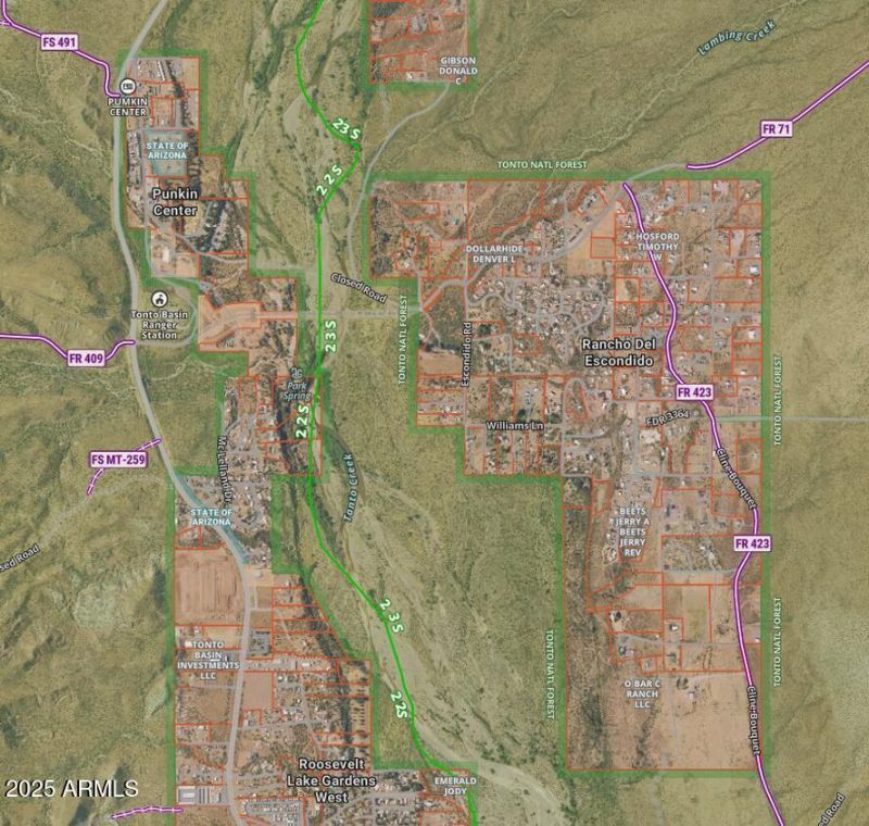 Pumpkin Center Lodge - Tonto Basins only lodging property. Exceptional investment opportunity with 10.96% cap rate on $60,256.64 NOI. Property sits on over 1 acre directly adjacent to the historic Pumpkin Center Bar (100+ year community landmark, also for sale by same owners). 13 total units in 2 buildings: single-story building with 5 units at approximately 335 sq ft each, and larger building with 8 efficiency suites at approximately 505 sq ft each featuring kitchenettes and refrigerators. All units have brand new air conditioning. On-site property manager included. Strong upside potential - property has never been marketed on Airbnb or VRBO. Opportunity to significantly increase short-term rental income or convert units to long-term leases. Beloved by local anglers and outdoor enthusiasts. Ample parking for cars, boats, and RVs. Back patio with barbecues. Turnkey operation in prime Tonto Basin location near Roosevelt Lake with year-round demand and no competing lodging nearby.