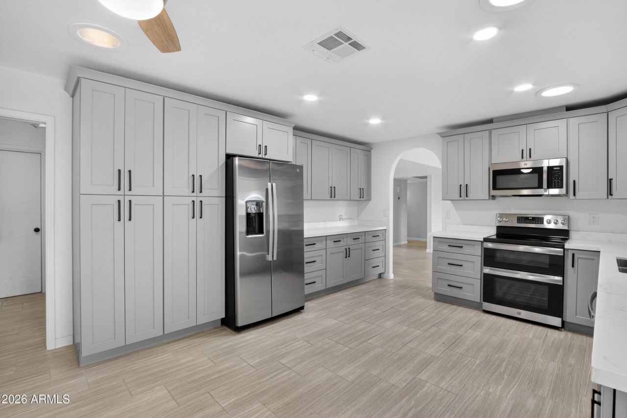 This 3-bedroom, 2- bathroom, 2 master suite home is move-in ready! Recently remodeled with low-maintenance living. Updated Dual Pane Windows, Fresh paint throughout the entire house gives a bright and welcoming feel, featuring tile flooring in the main living areas that is easy to maintain and made to last. The remodeled kitchen shines with new cabinets, granite countertops, and a redesigned floor plan that opens smoothly to the main living area, making the home feel more open and connected. The living and dining spaces flow together nicely and offer a comfortable place to relax, visit with friends, or enjoy quiet evenings at home. Large master with walk-in closet, freshly carpeted. The attached 2 car garage includes extra space for a golf cart, ideal for enjoying the many activities, paths, and clubs found throughout Sun Lakes. Set in a great location close to shopping, dining, and community features, this home offers comfort, convenience, and lifestyle that make Sun Lakes such a special place to live.