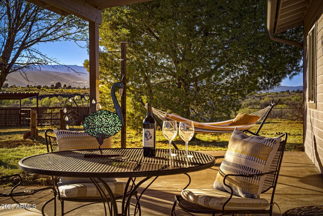Gorgeous Horse Property on 2.33 acres located in the heart of the Verde Valley with views of Verde River greenbelt and magnificent Mingus Mountain Views in quiet neighborhood. 12 min to Cottonwood, 18 min to Sedona. Turn key horse set up with 4 large covered stalls, dressage riding arena, hay & tack storage, wash station, detached 2 car garage, fully fenced and gated for privacy. The 3 bedroom, 2 bath home with split floor plan features a new roof (2024), a new in HVAC (2025), new exterior paint (2024), new flooring (2023), a gas fireplace, a private well, and plenty of room for your toys. Potential 4th Bedroom with separate entrance can be used as an office. A short walk to the Verde River! No HOA.
