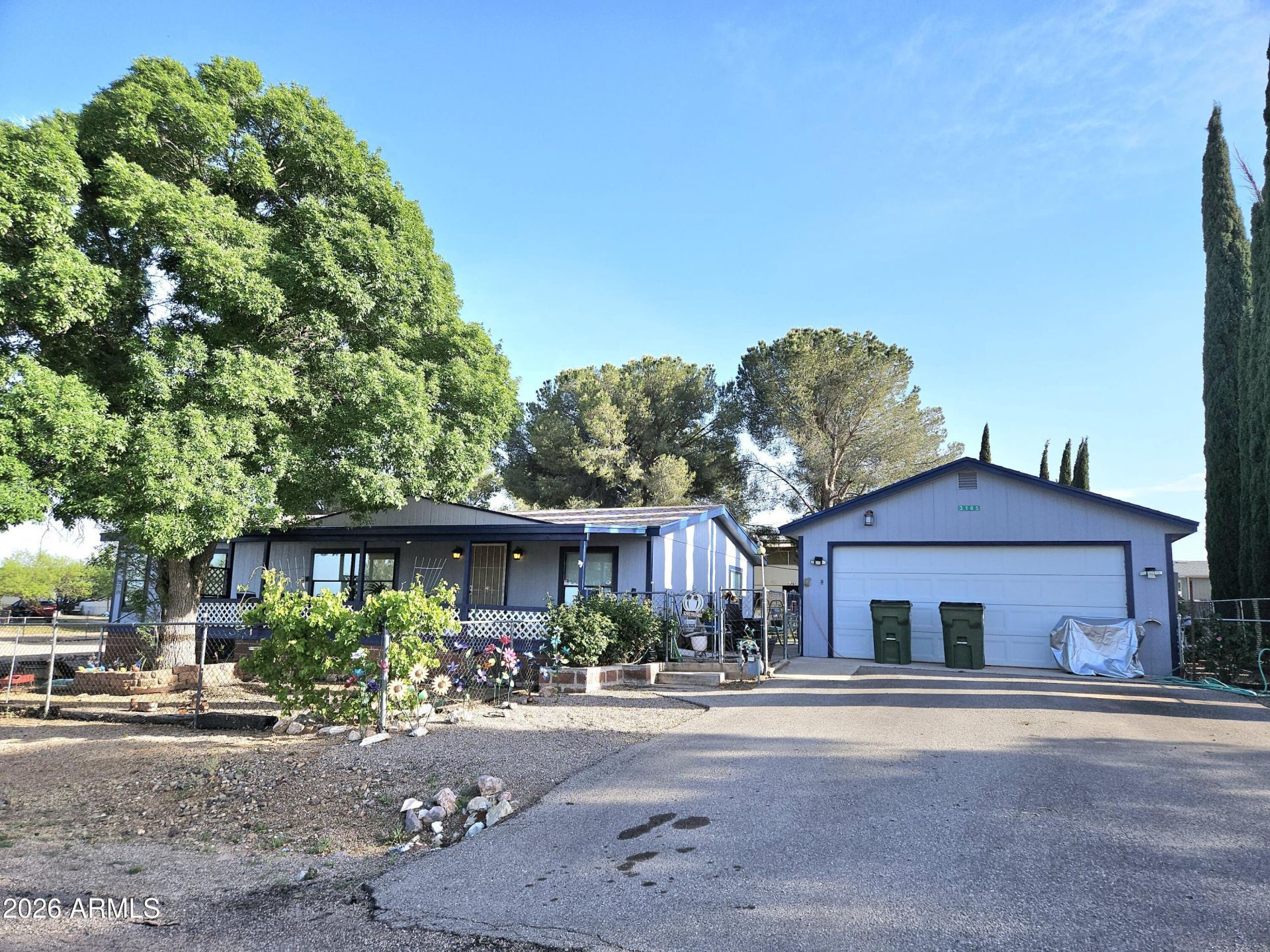 This property has so much to offer! 1991 1,568 sq. Ft. Home on a corner, double lot that is separately fenced w/chain link. Mature shade trees & grass backyard creates your own desert oasis. There is a new 10 x 15 shed w/a loft that offers lots of additional storage, hobby/craft room, art studio, or workshop. Theres an additional shed for even more storage. Two car detached garage w/work benches. 4 yr. Old roof. New laminate floors throughout w/a warranty guarantee. New water heater. Beautifully appointed kitchen w/pine cabinets that have soft close drawers & pull outs. Open, split bedroom floorplan. Ceiling fans throughout. On a paved street w/easy access to I-10 for commuting to Tucson or Sierra Vista. Come see this one TODAY!!
