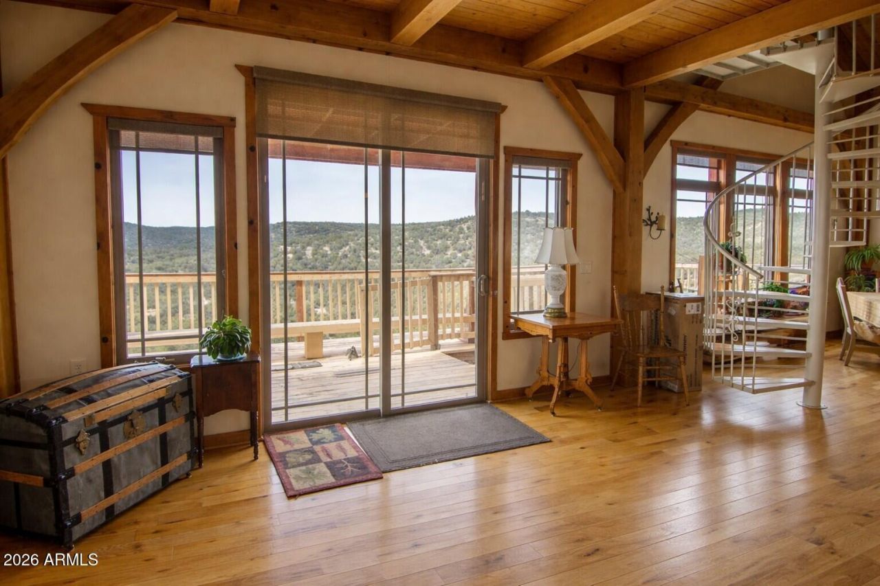 Stunning Timber Frame home showcasing exceptional craftsmanship, perfectly positioned on nearly 20 acres to capture some of the best panoramic views in the area. National Forest boundary backs to part of this property providing direct access to nature, and breathtaking vistas of rolling mountains, vibrant sunsets, and abundant wildlife.Inside, the home features a warm and inviting open-concept design with a beautifully appointed kitchen, living, and dining area framed by expansive windows that bring the outdoors in. Rich wood beams, vaulted ceilings, and quality finishes create a true mountain retreat feel.The thoughtfully designed layout includes two spacious primary suites, each with its own bathroom--ideal for guests or multi-generational living. A versatile loft space provides additional room for sleeping, recreation, or a home office.Comfort is ensured year-round with radiant in-floor heating, multiple mini-split systems, and a cozy wood-burning stove for those cooler evenings.Enjoy the outdoors from multiple vantage points, including expansive decks and a screened-in porch, perfect for relaxing while taking in the incredible scenery.The double-deep garage, complete with heating and cooling, offers excellent space for vehicles, storage, or a workshop.Located within the Sierra Verde Ranch community, the property benefits from a modest annual fee that supports road maintenance and provides access to two community wells, including one nearby on Anvil Rock Rd.