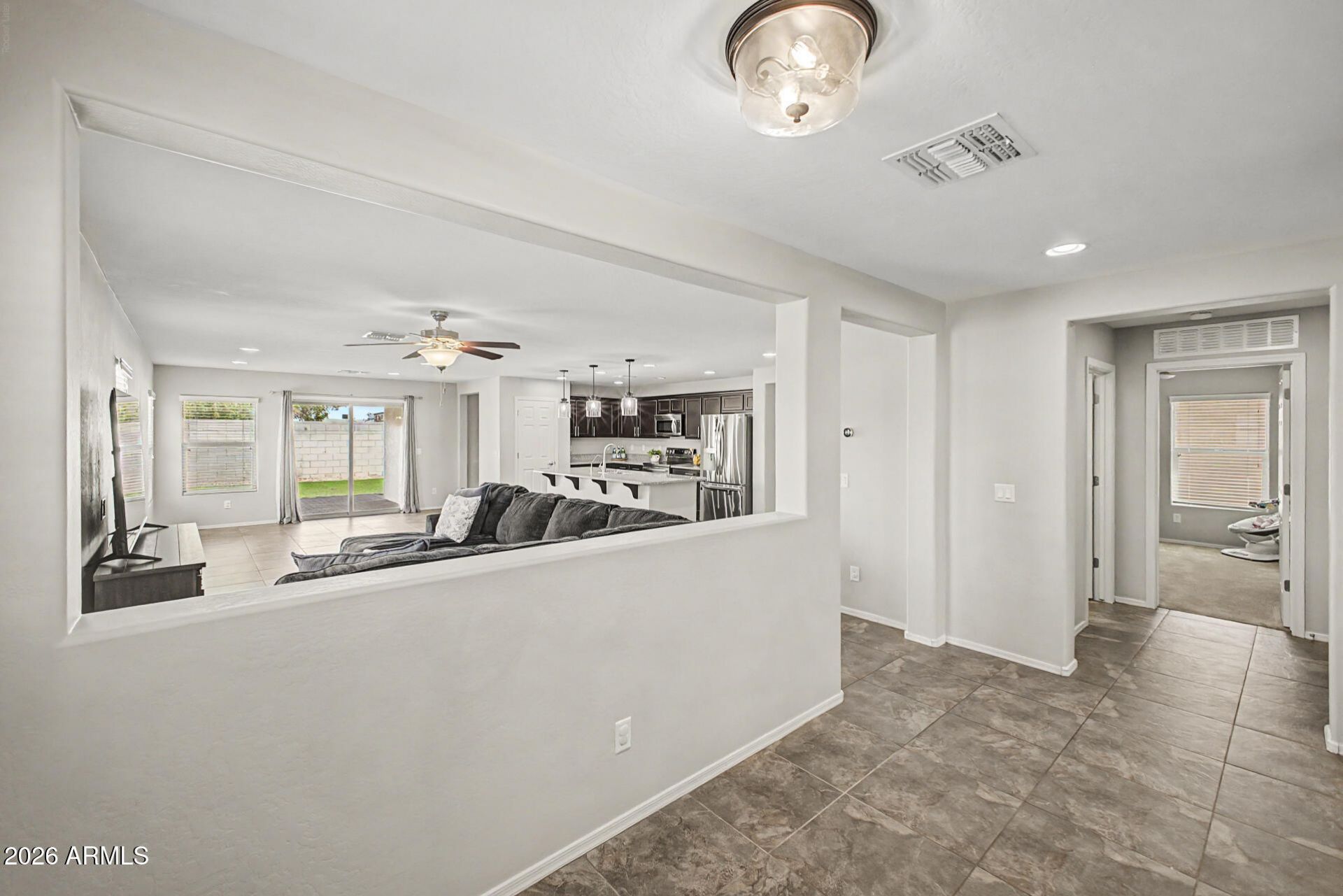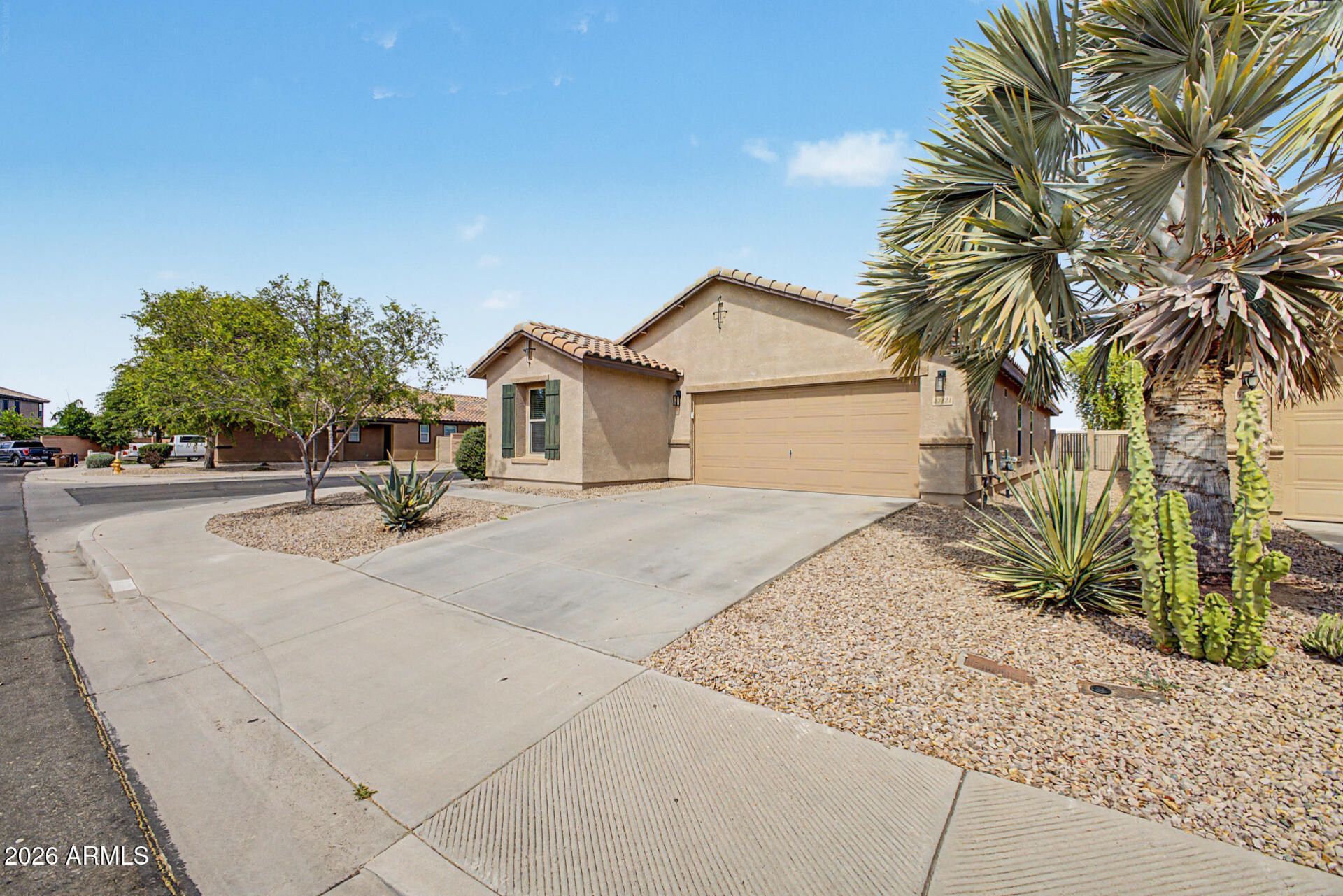 Welcome to your new 3 bedroom, 2 bathroom home with a versatile flex space--perfect for a home office, gym, or kids playroom nestled in the heart of San Tan Heights. This thoughtfully designed single-level layout centers around a beautiful kitchen, featuring stainless steel appliances, granite countertops, a spacious island, and elegant cabinetry, making it the true heart of the home. Situated on a desirable corner lot, the property also boasts a large backyard complete with turf and pavers, offering a low-maintenance outdoor space ideal for relaxing or entertaining.