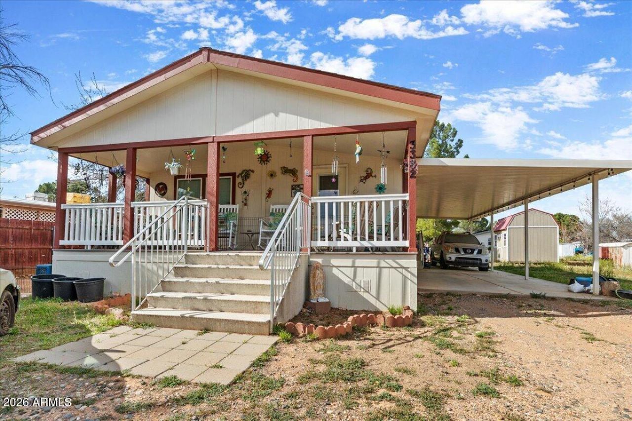 This charming 2-bedroom plus office/bedroom , 2-bathroom home in the heart of Cottonwood offers the perfect blend of modern comfort and easy Arizona living. Built in 2015, this well-maintained residence features an open-concept layout with 1,217 square feet of bright, airy living space. It sits on a double lot and includes a new storage building.The best part is the covered front porch. You will find yourself spending hours with friends and family enjoying this outdoor space.