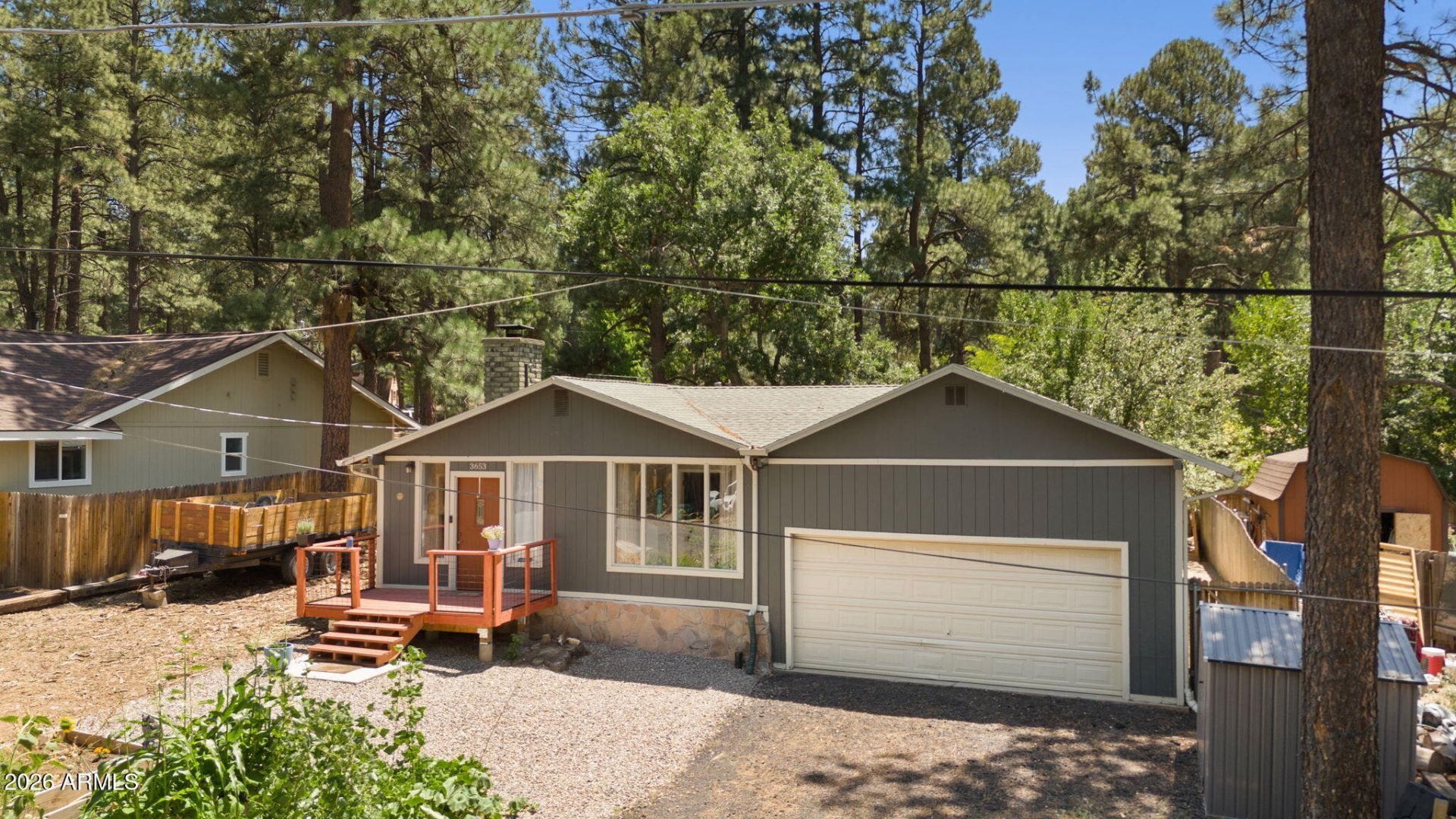 Nestled among the tall pines of Kachina Village, this cozy mountain retreat blends warmth, charm, and thoughtful updates. Set on a large, fully fenced lot, the home features 2 bedrooms, an office, a mudroom, and an oversized laundry room with an industrial sink. Recent improvements include updated flooring, new windows in 2024, a brand-new water heater, brand-new furnace, remodelled kitchen, updated shower, custom primary bath cabinetry, and a beautifully renovated laundry room. Refreshed front and back yards create inviting outdoor spaces, while the chicken coop adds a touch of country living. A rare garage offers excellent storage for gear, plus RV parking for all your mountain adventures.