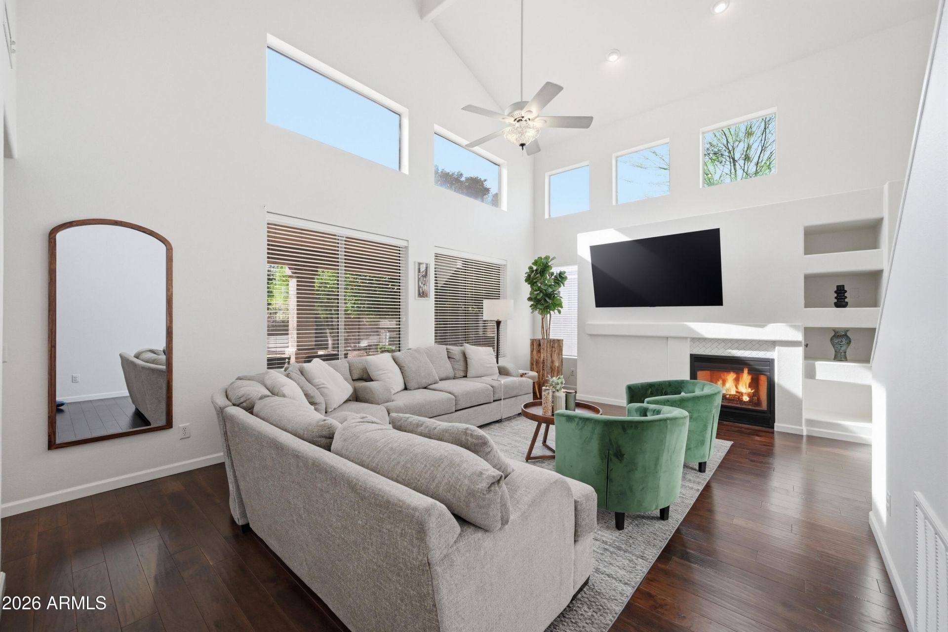 Experience the best value in Chandlers popular Dobson Place! Beautiful stone elevation outside. Stunning luxury engineered wood floors, soaring ceilings & abundant natural light welcomes you inside. Spacious kitchen offers warmth & texture with an island, walk-in panty, a large breakfast bar sides the large dining room. Upstairs, discover generously sized bdrms, dual vanities & a massive primary closet. Good storage space throughout. Relax under the extended covered patio, overlooking the mature trees with plenty of room for a pool of your dreams! Newer interior paint, carpet upstairs & built-in cabinets in this rare 3-car extended garage. Perfectly located near highly sought after CTA Liberty, multiple community parks & shopping/dining/entertainment all around. This home is a Must see!