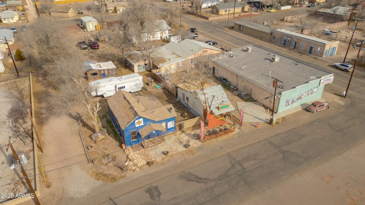 Commercial Property available 1/2 block north of Historic Route 66 in Seligman AZ. Four buildings and .6 acres of land on a prime corner location The largest building, 3,358 sf, currently operates as a grocery store and laundromat. A building behind is leased as a residence with 1,331 sf, 3 bdrms and 1 bath, there is a 776 sf historic Sheriffs House, and a 384 sf coffee shop also on the property with frontage on Schoney. Plenty of on-street parking in the area. Great visibility from Route 66 and a direct site-line to where all the tourist buses stop to visit. Two septics on the property along with town water and natural gas allow for many uses in this location. Current grocery store and laundromat business available separately if you wish to continue operations.