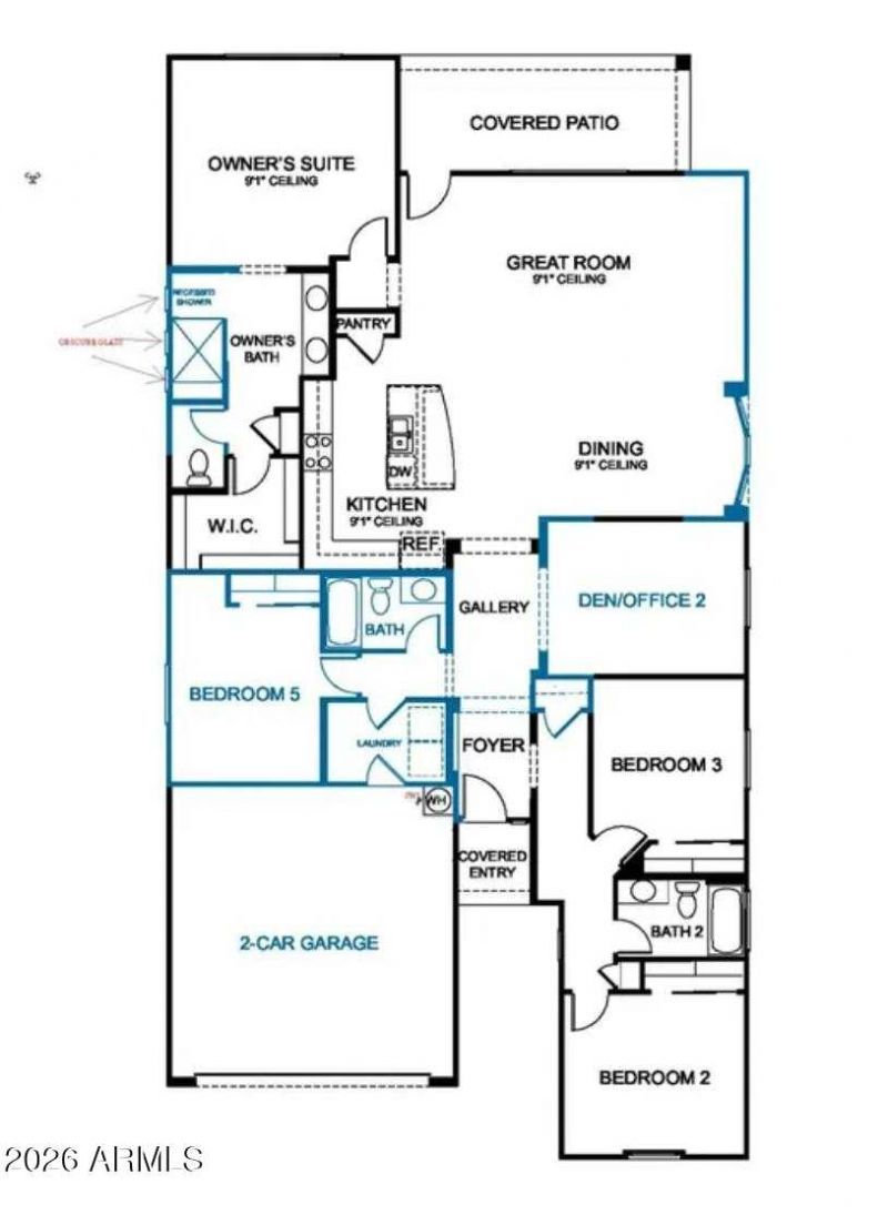 Popular Sierra Plan in desirable Clarkdale! This single-level home features 4 bedrooms, 3 baths, plus a flexible study/den with a split floor plan ideal for privacy or multi-generational living. Upgrades include quartz countertops, upgraded cabinetry, designer lighting, stylish fixtures, and stainless steel appliances. The spacious primary suite offers a spa-like bath with zero-entry shower.Open-concept great room includes an electric fireplace with custom wood mantle. Dining area captures mountain views. Backyard is landscaped with an oversized patio, pergola, and firepit. Extras include extended paver driveway, garage storage, and energy-efficient construction by Mandalay Homes. Community amenities include pickleball, basketball, playground, and walking paths.