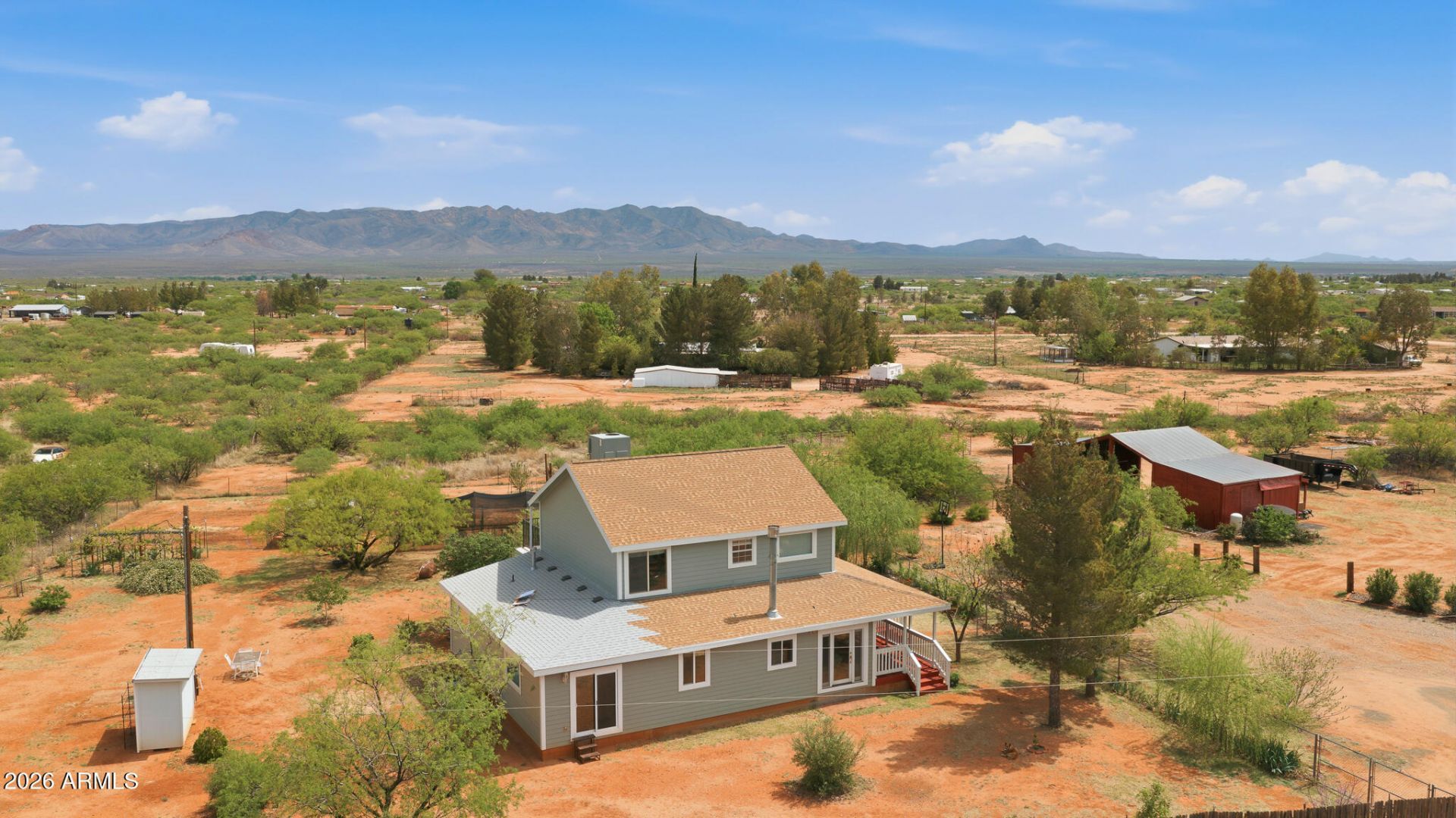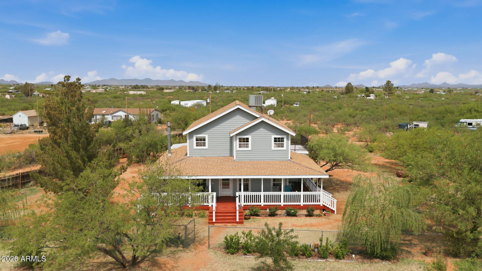 On 4+ acres, this NEWLY RENOVATED farmhouse style home, features a stunning wrap around porch, is any homesteader, gardener, or equine enthusiasts dream! Main floor is an open concept living room, eat in kitchen, and formal dining room. Main floor bdrm has outside entrance, laundry room, full BA and an office. 2nd floor has a large primary bdrm suite with a balcony to see the stunning mountain views! Property includes a 2 bdrm, 1 BA guest house that could be a rental! Has 2 stall barn with workshop, large enough for covered parking, enclosed chicken run. Has round pen, 2 RV hook ups, 25+ shade/fruit trees, irrigated/enclosed garden, green house, irrigated area for large crops, grapes w/lovely arbor, 90% of landscaping is on watering system. Too many new renovations to list! A MUST SEE! Features stunning views of the Huachuca Mountains and located less than 20 miles of Fort Huachuca. Ask your agent for the complete, very long list if additions and renovations.