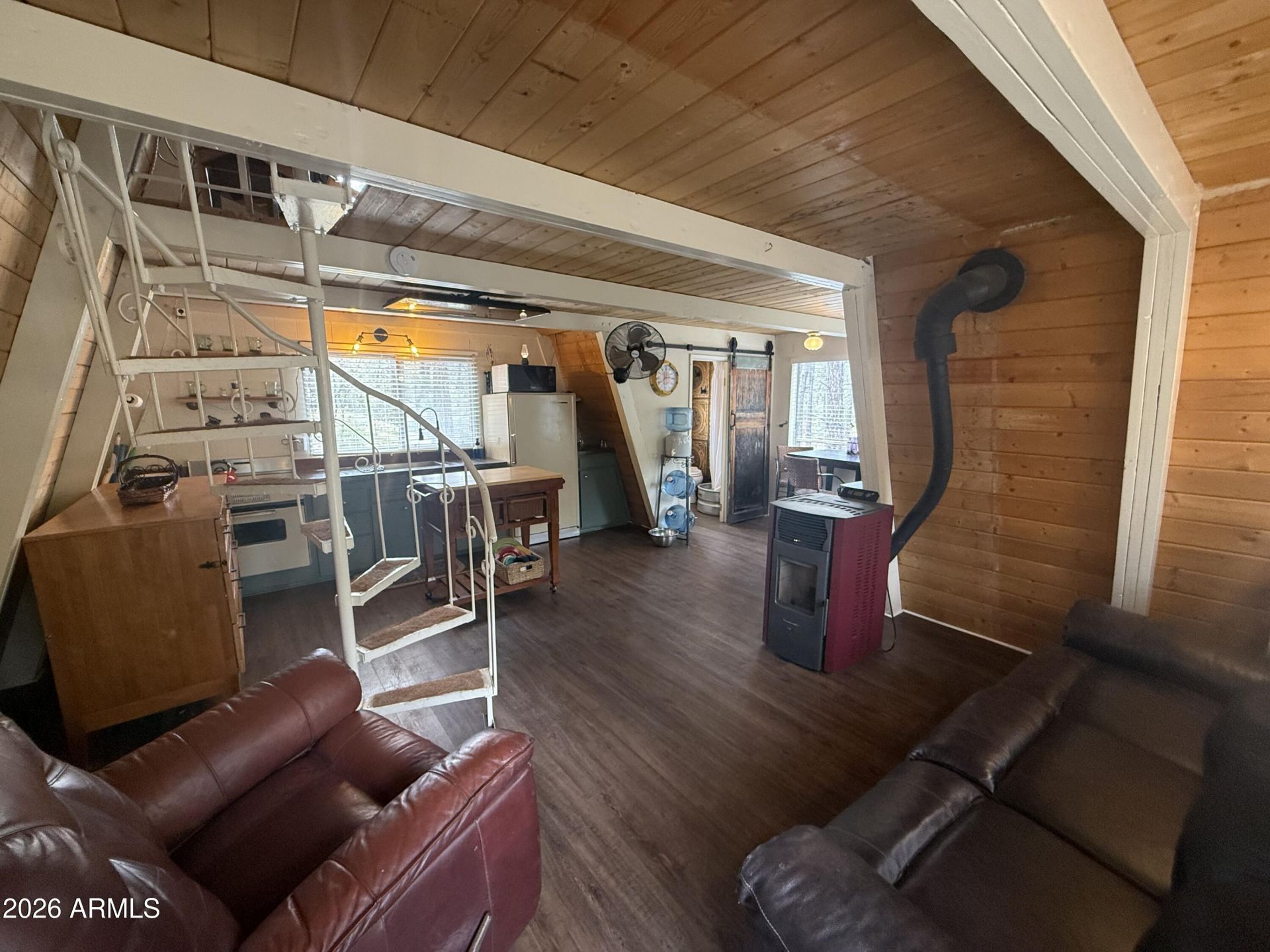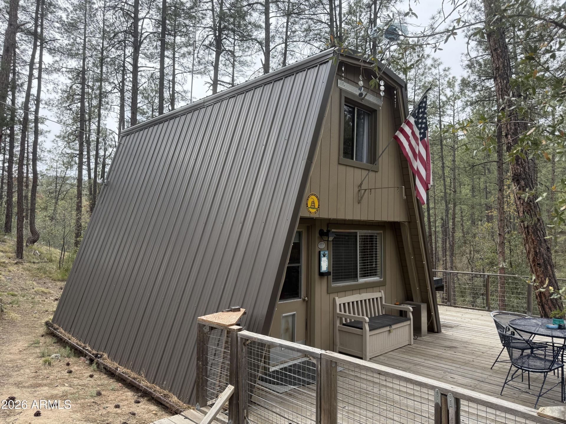 You will love this cozy A-frame located on a double lot totaling .74 acres. Borders Prescott National Forest, lots of parking with the circle driveway. Metal roof is perfect for the rainwater capture system. This cabin is complete with APS electric and eco-friendly toilet. Outdoor storage shed is perfect for storing tools. Enjoy cool mountain evenings on the spacious deck. Pine tongue and groove ceilings and barn door add to the rustic charm. Loft features extra space that could be used to sleep guests. Now is your opportunity to buy a secluded mountain get-away in CK. Only 1 1/2 hrs from north Phoenix. Sale includes 204-09-083 and 204-09-082.