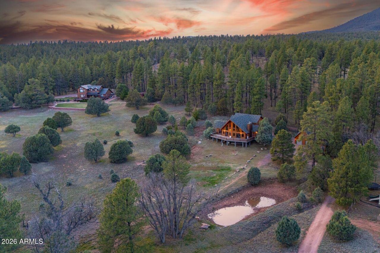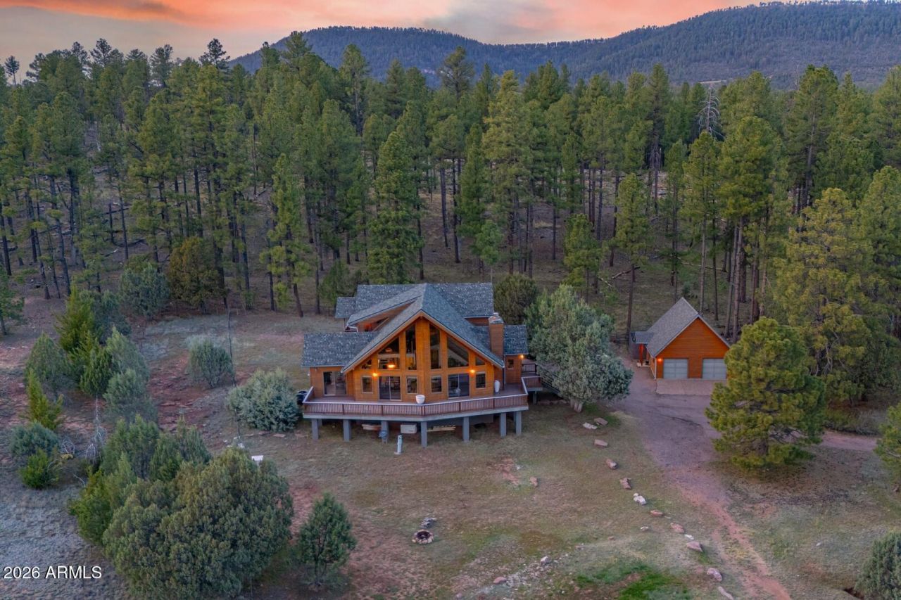 Come and unwind at this stunning mountain retreat where luxury meets the mountains in Gordon Canyon. This custom-built home sits on a level 2.54+/- acres backing up to the Tonto National Forest that has been thinned for fire protection. A welcoming stairway leads to an expansive Trex deck-perfect for relaxing and taking in sweeping views of the meadow and surrounding mountains. You will enter a large foyer with a bench to remove your shoes. Upon entering the home, you are greeted with natural light and views from the floor to ceiling windows. The great room showcases rich wood flooring, a striking rock fireplace, and a custom live-edge juniper mantel--creating a cozy yet refined gathering space. The chefs kitchen is equally impressive, featuring stainless steel appliances, a 6-burner gas range, abundant custom cabinetry, a breakfast bar, and a walk-in pantry. Enjoy your morning coffee or tea in the breakfast nook, where sliding glass doors open to the deck, inviting in cool mountain breezes and spectacular views. The main level also includes a powder room and two spacious primary suites, each with private deck access and full en-suite bathrooms. When you go upstairs you are greeted with a lovely loft that has a sitting area or reading nook to soak in the spectacular views of Turkey Peak. The versatile loft was designed for wellness, fitness, or relaxation. It is currently used as an art studio. The primary suite is a true sanctuary, offering a large walk-in closet, a spa-inspired bathroom with dual sinks, a walk-in shower, and a jetted soaking tub. A private balcony completes this serene retreat. Additional features include a private well, an option to complete a stock pond in the front yard near the oak grove and a detached two-car garage with a dedicated workroom and ample storage space. Meticulously designed and lovingly maintained, this one-of-a-kind property reflects exceptional pride of ownership. The listing agent can arrange your private tour today to experience mountain living at its finest.