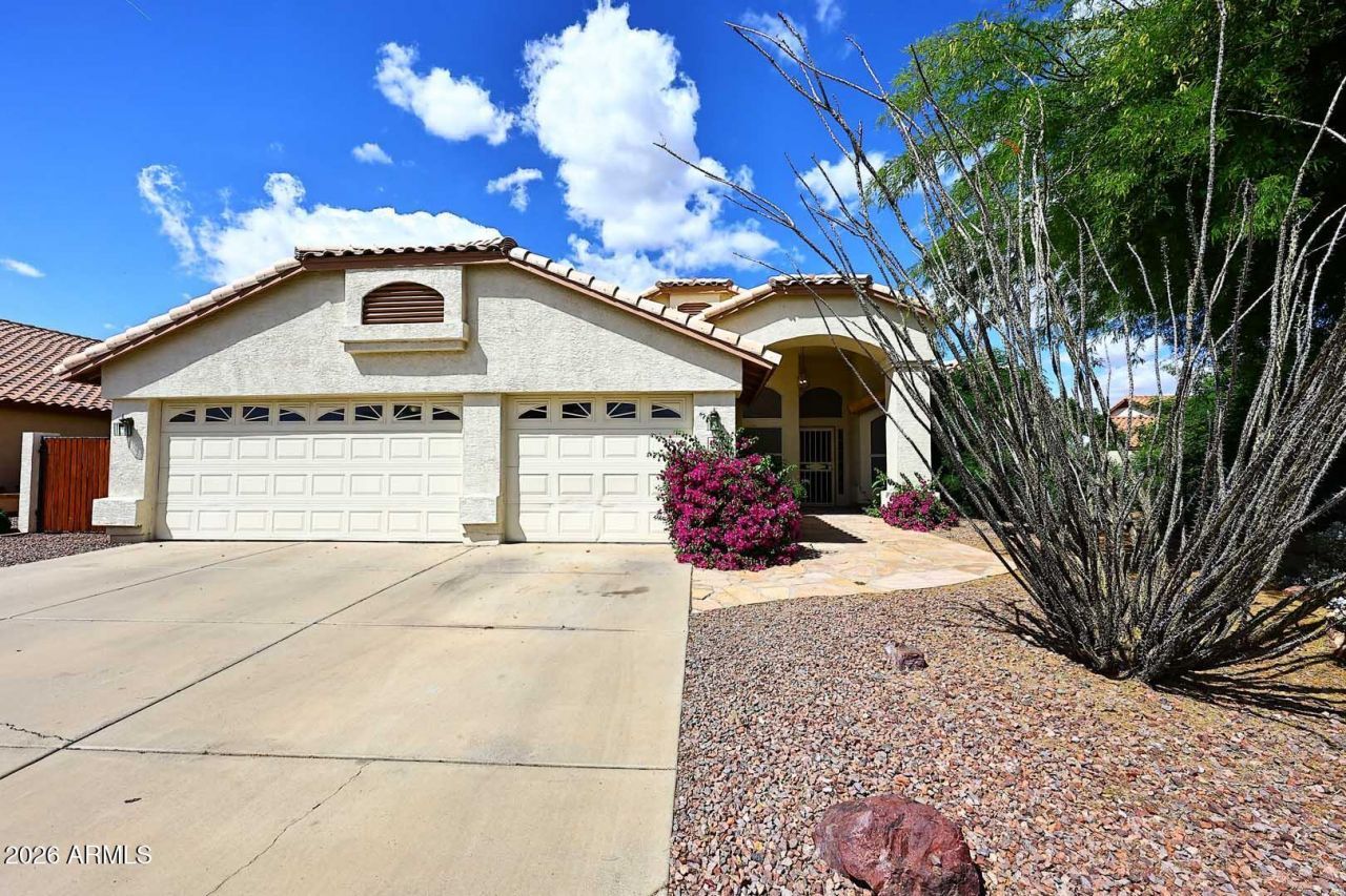 Welcome to one of Glendales hidden gems! Fresh interior paint, new ceiling fans, & NO carpet! Newer (2023) A/C. Premium lot in highly-desirable Marbrisa Ranch. Soaring vaulted ceilings throughout the home. Updated kitchen features a large granite counters & island, stainless steel appliances, & pantry. Spacious family room perfect for everyday living & entertaining. The primary suite boasts an expansive walk-in closet, dual vanities, a separate tub/shower, & private toilet. Formal dining area & an additional living space or home office. Low maintenance/water landscaping with mature foliage, including 2 orange trees. Flagstone covered patio & front entry. Plentiful yard space to add a pool or expand the lawn & garden spaces. 3 car garage + Rare RV Gate!